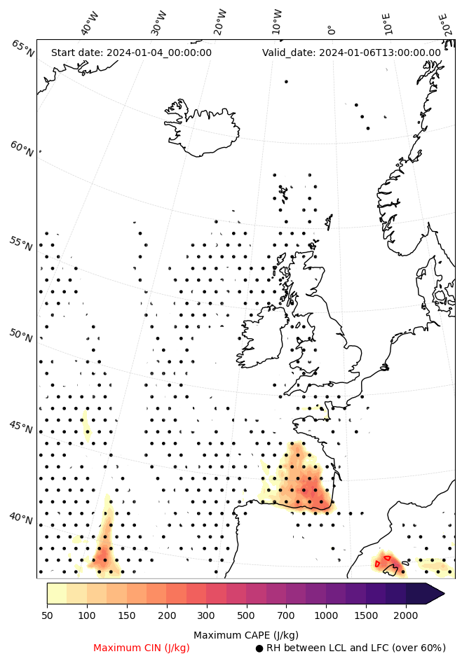 • Maximum CAPE (J/Kg)