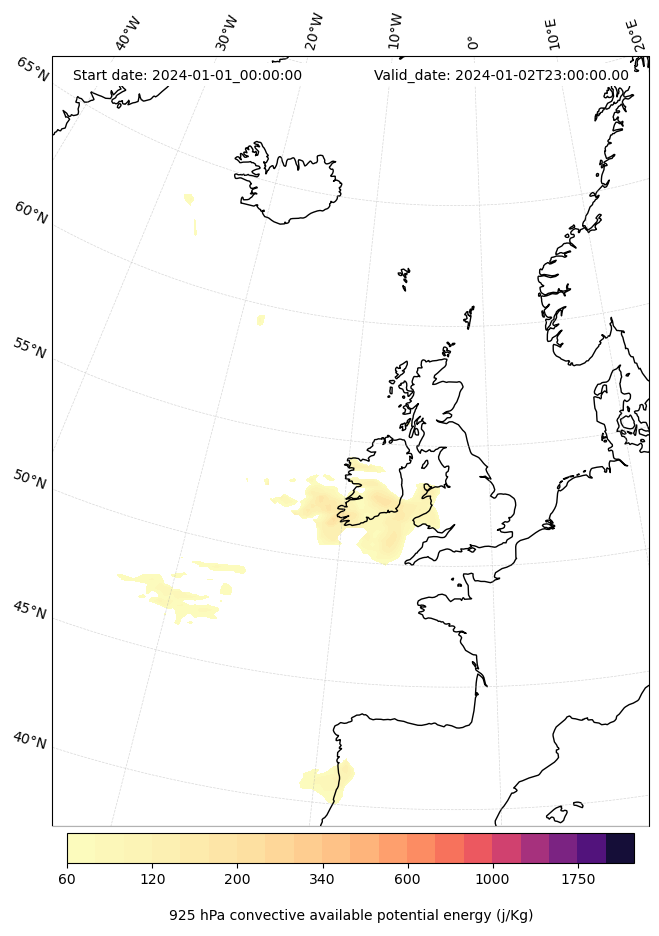 - Maximum CAPE (J/Kg)