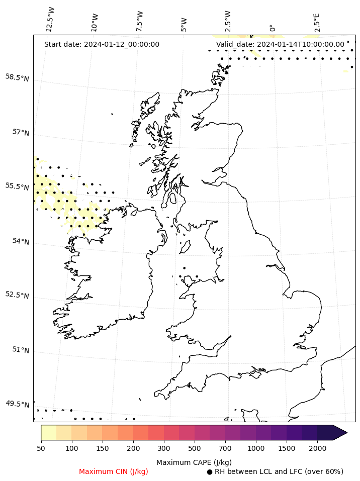 - Maximum CAPE (J/Kg)