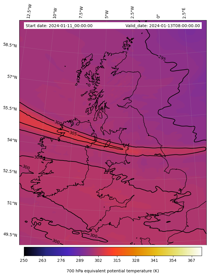 - Equivalent Potential Temperature (K)