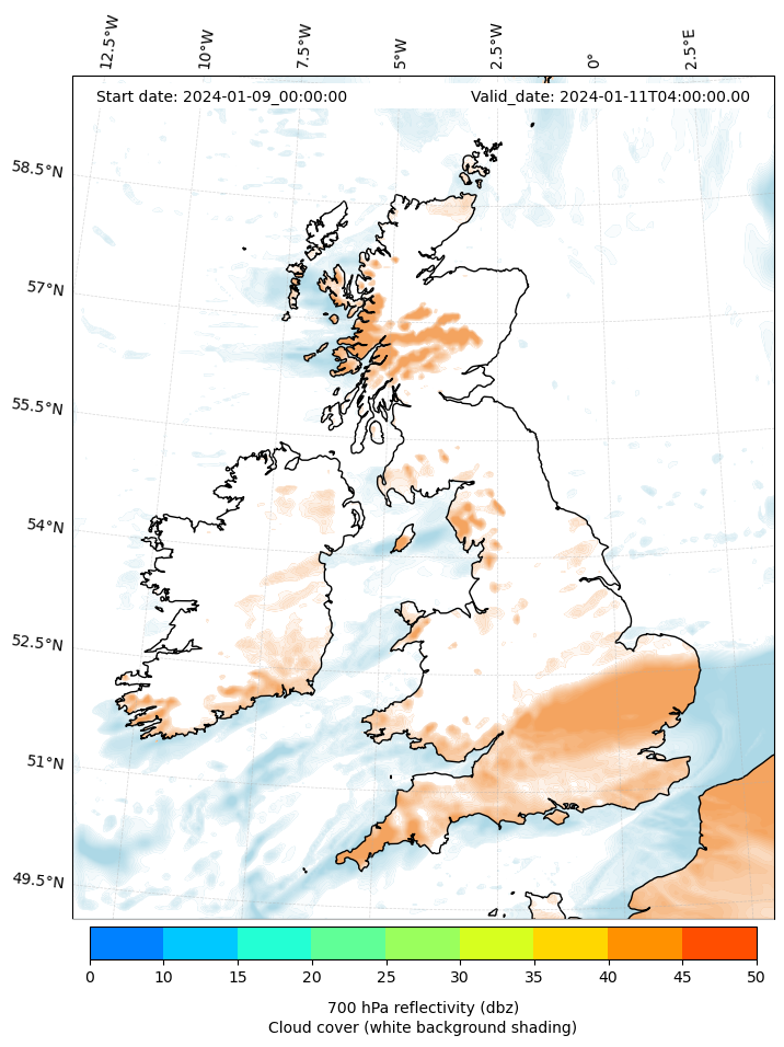 - Cloud water mixing ratio (g kg¯¹)