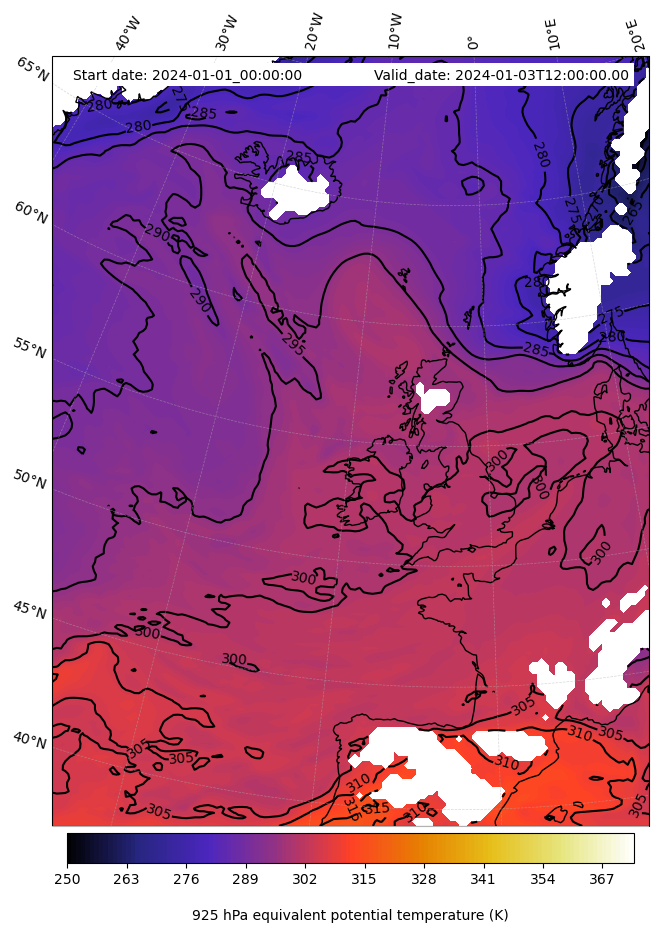 - Equivalent Potential Temperature (K)