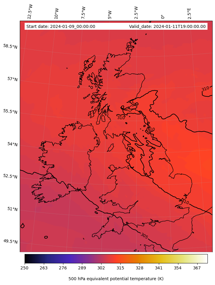 - Equivalent Potential Temperature (K)- 300 hPa