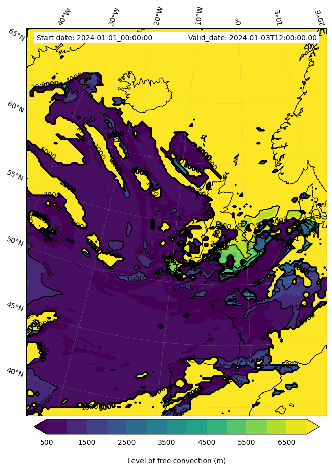 - Level of free convection (m)