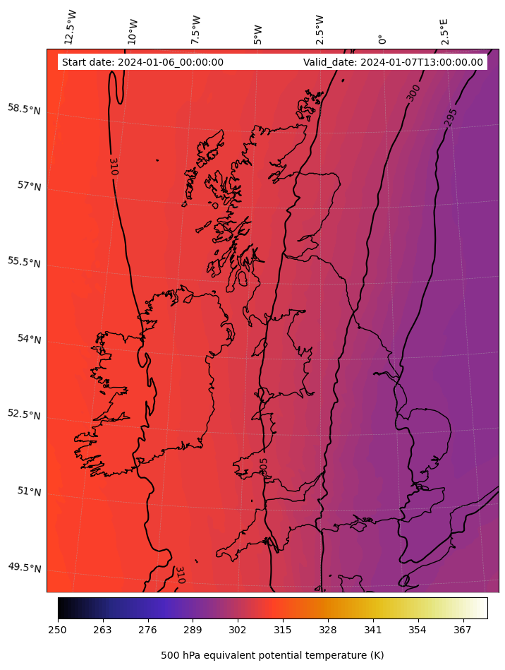 - Equivalent Potential Temperature (K)