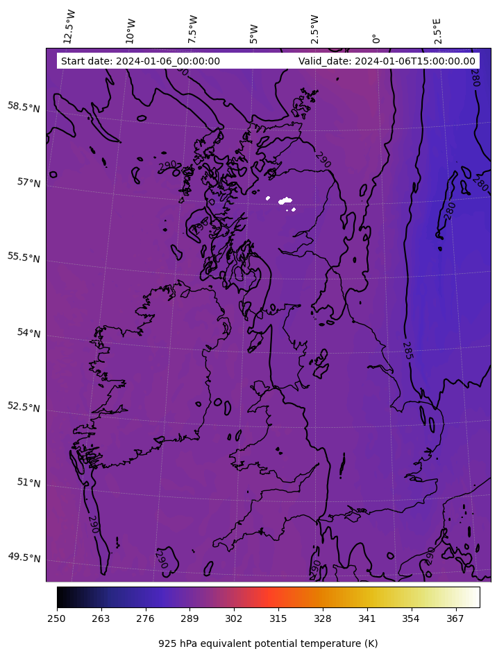 - Equivalent Potential Temperature (K)