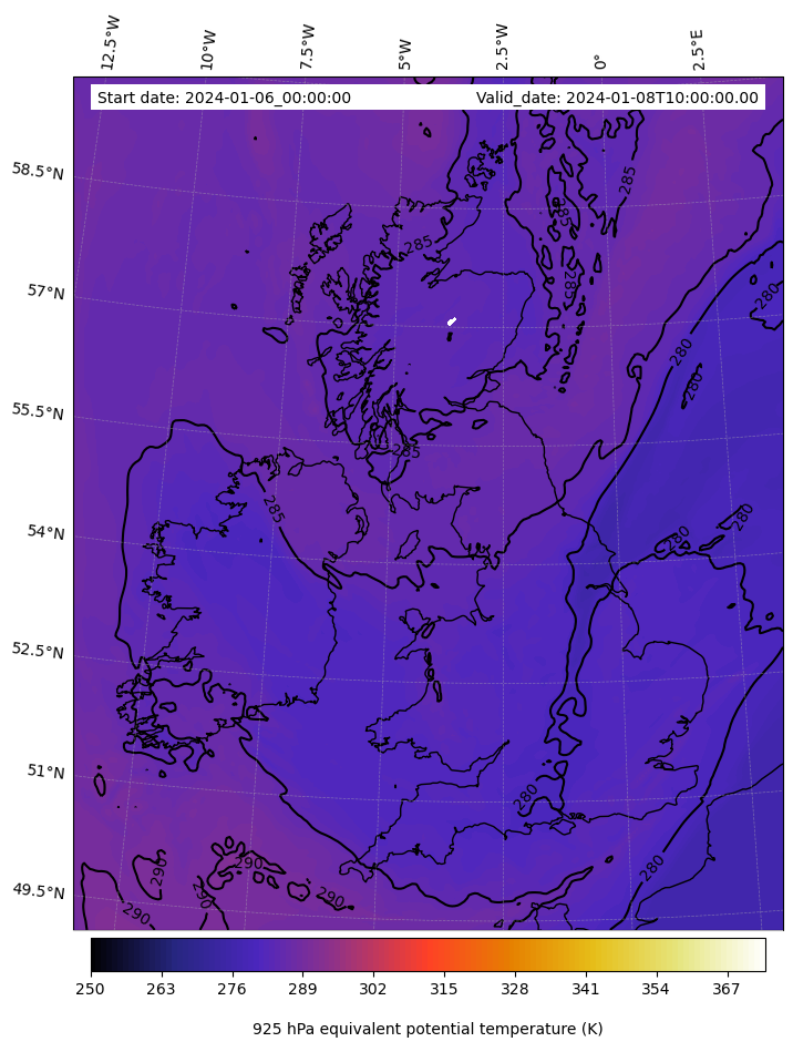 - Equivalent Potential Temperature (K)
