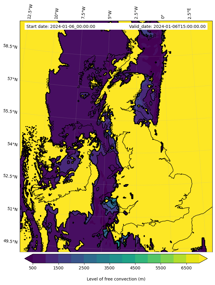 - Level of free convection (m)