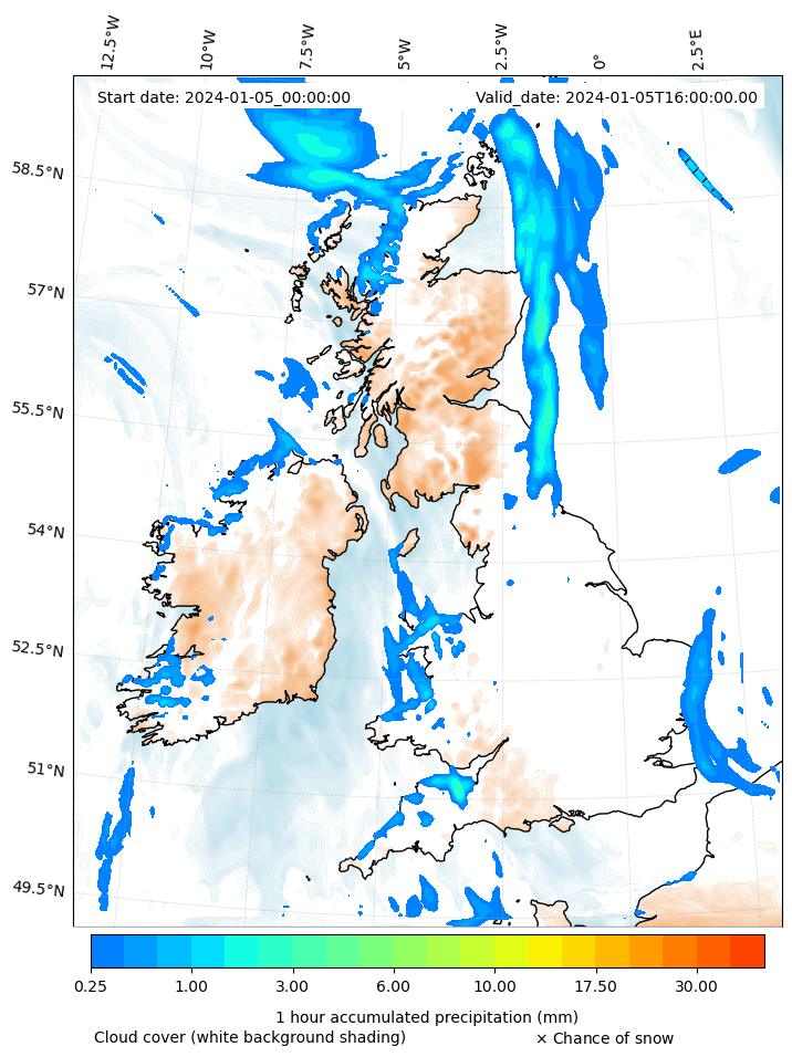 - Snow mixing ratio (g kg¯¹)