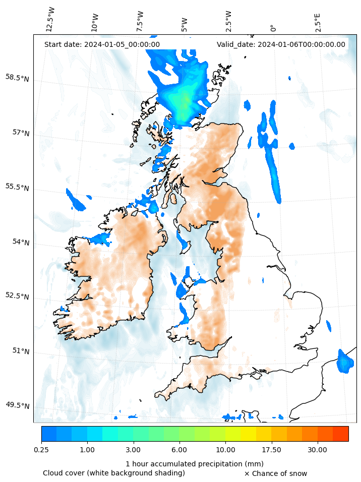 - Snow mixing ratio (g kg¯¹)