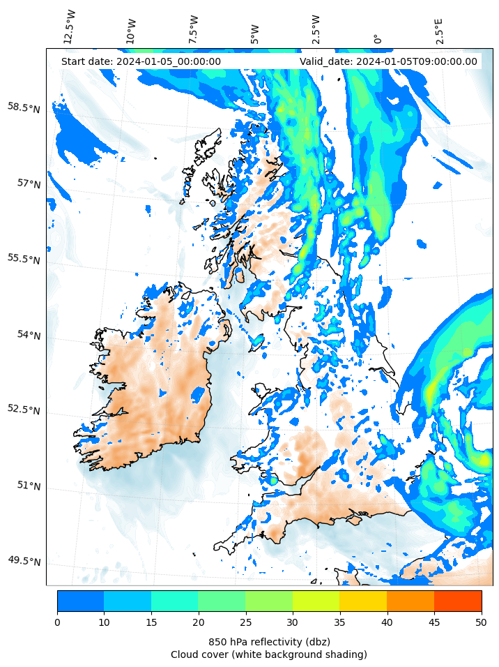 - Cloud water mixing ratio (g kg¯¹)