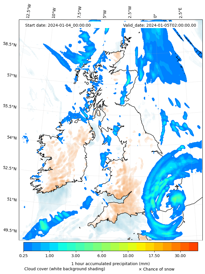 - Snow mixing ratio (g kg¯¹)