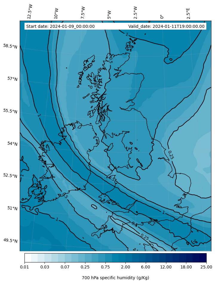 - Water vapor mixing ratio (g kg¯¹)
