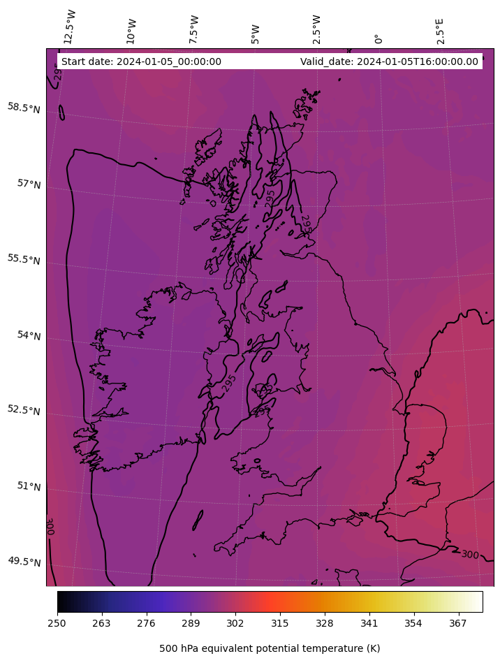 - Equivalent Potential Temperature (K)