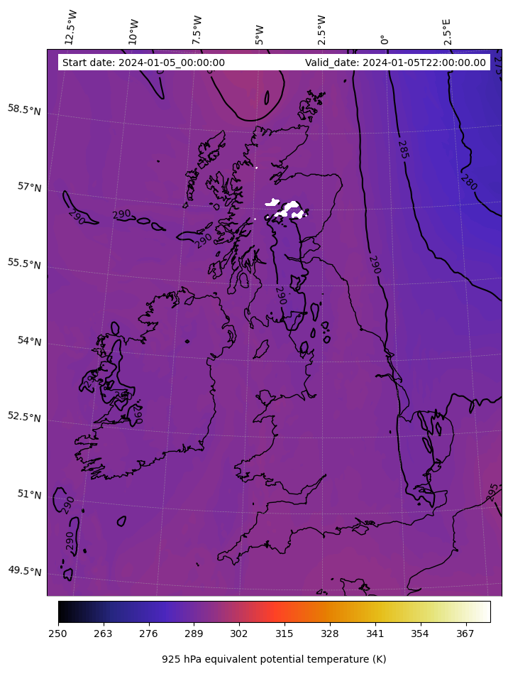 - Equivalent Potential Temperature (K)