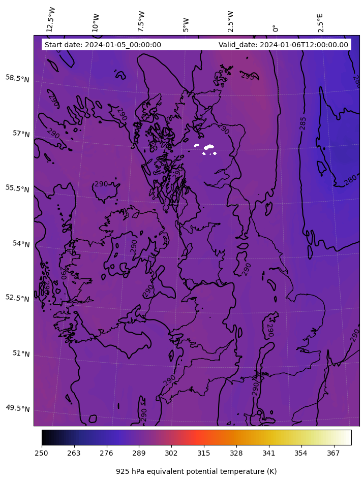 - Equivalent Potential Temperature (K)