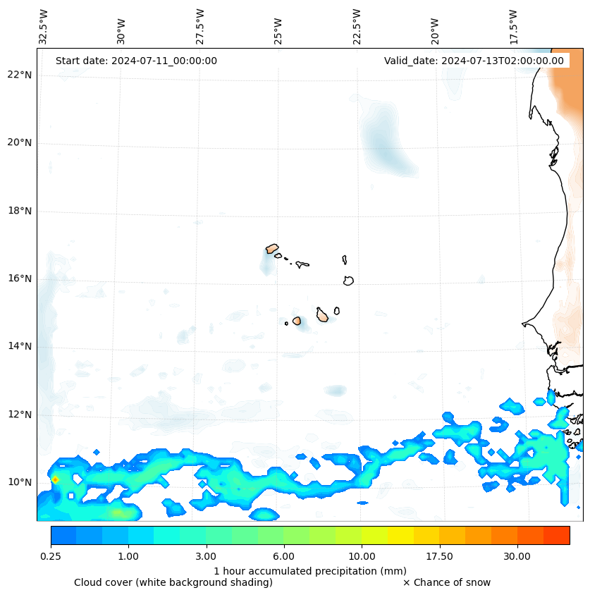 - Snow mixing ratio (g kg¯¹)