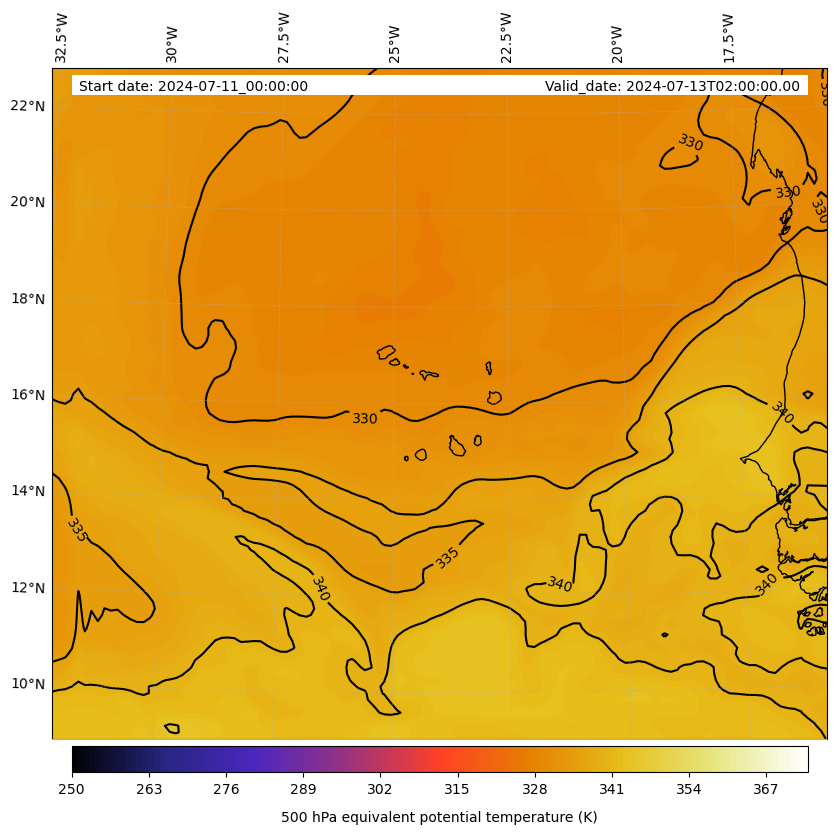 - Equivalent Potential Temperature (K)