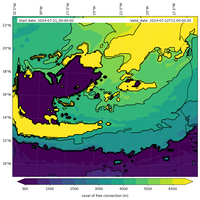 - Level of free convection (m)