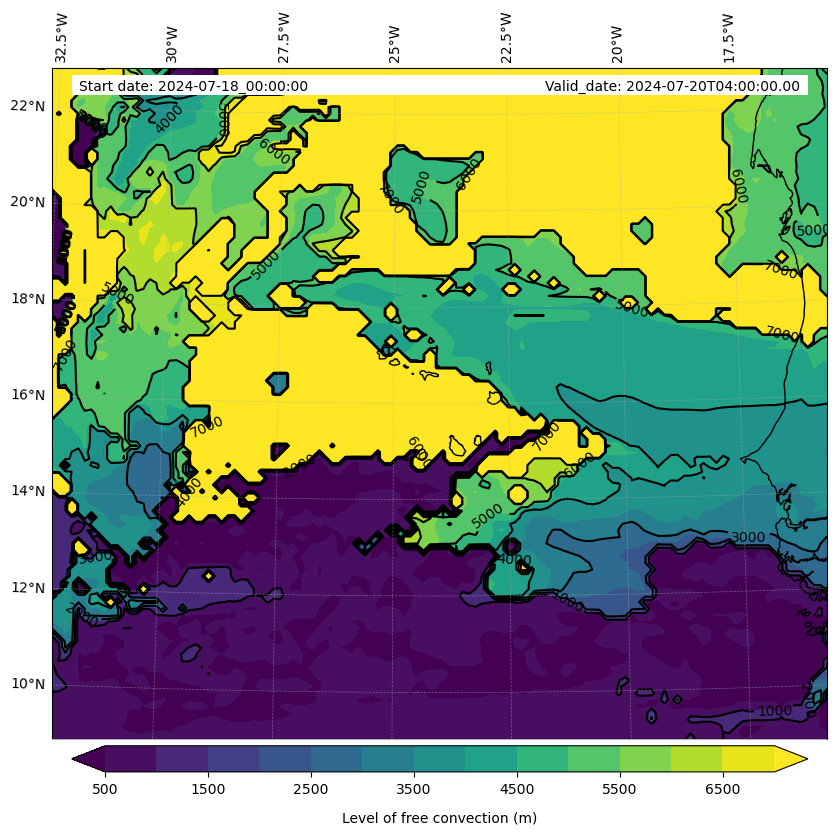 - Level of free convection (m)