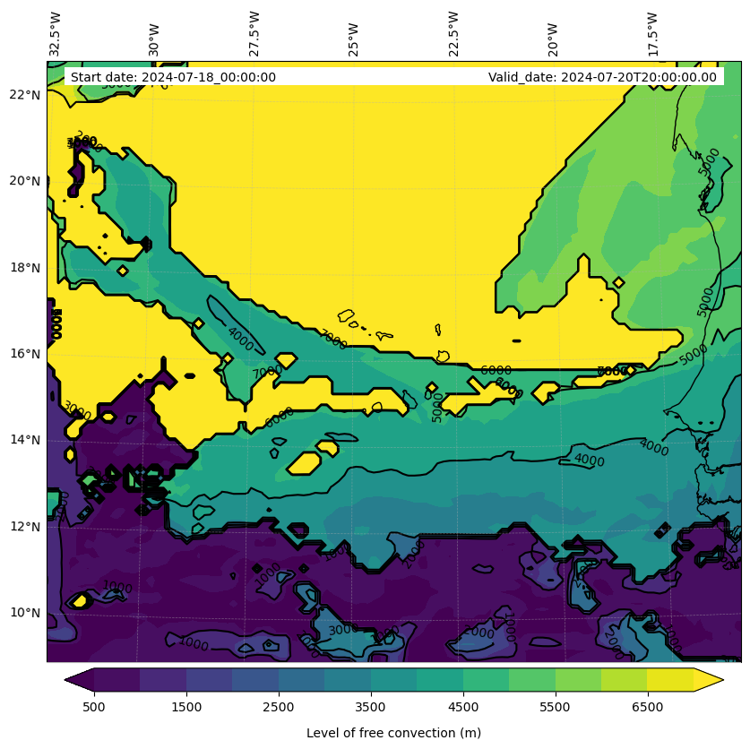 - Level of free convection (m)