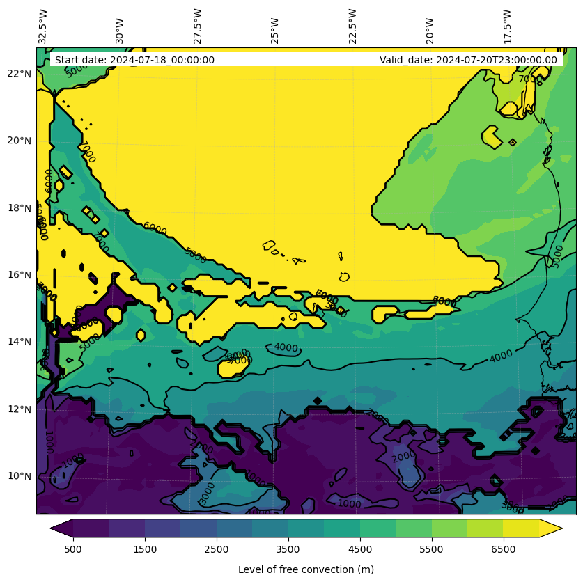 - Level of free convection (m)
