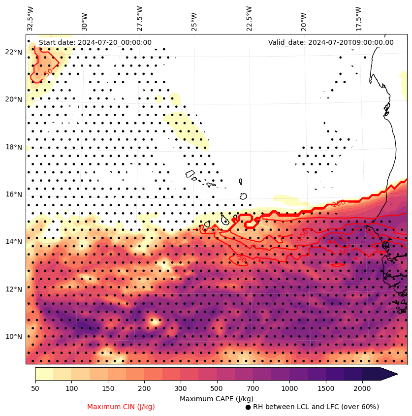 • Maximum CAPE (J/Kg)