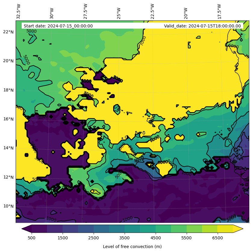 - Level of free convection (m)