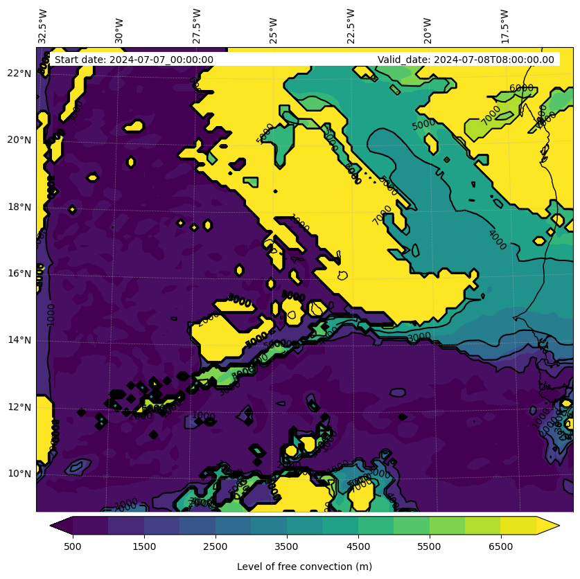- Level of free convection (m)