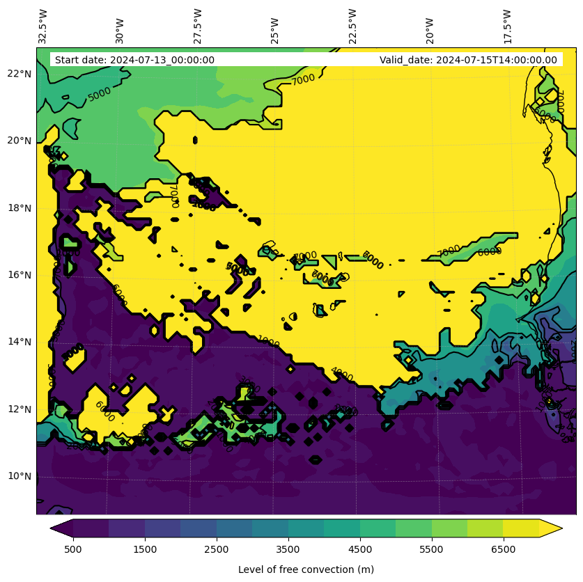 - Level of free convection (m)