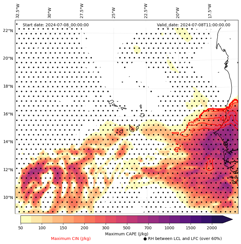 • Maximum CAPE (J/Kg)