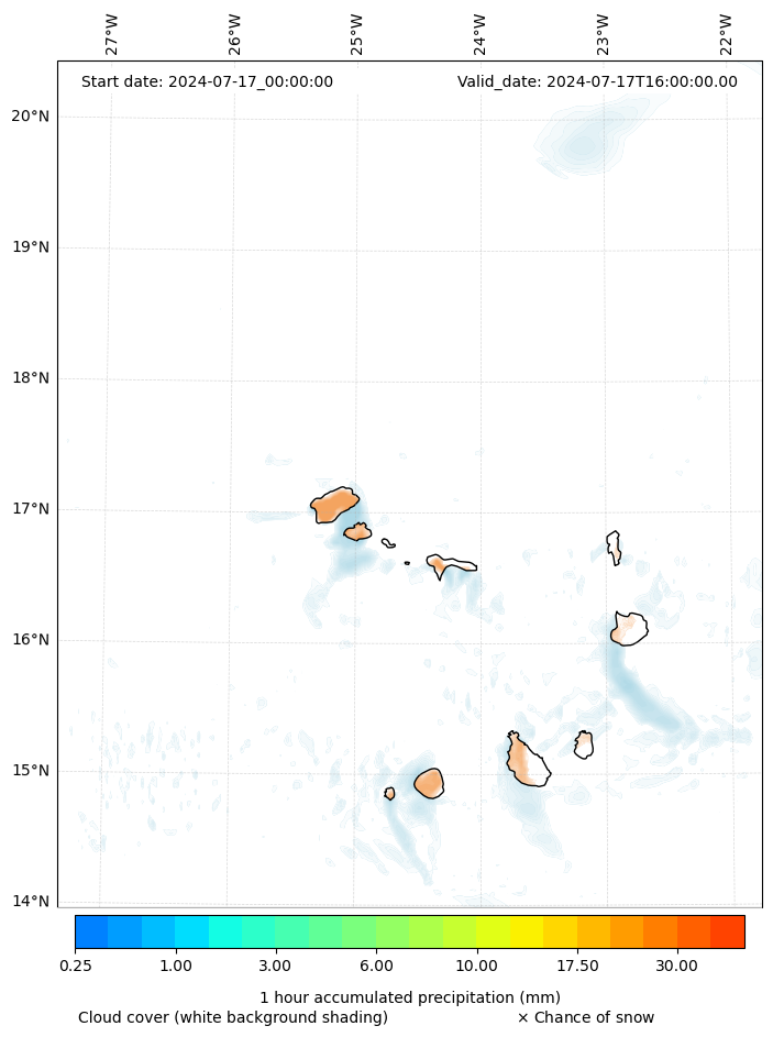 - Snow mixing ratio (g kg¯¹)