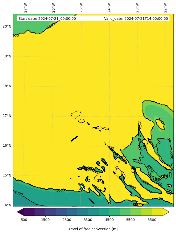 • Level of free convection (m)