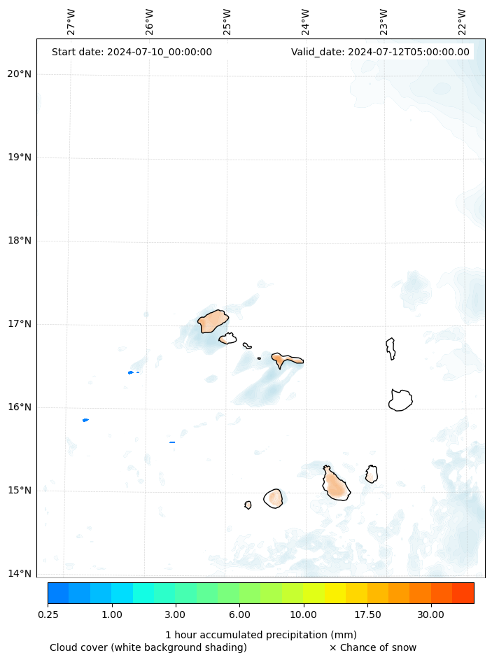 - Snow mixing ratio (g kg¯¹)