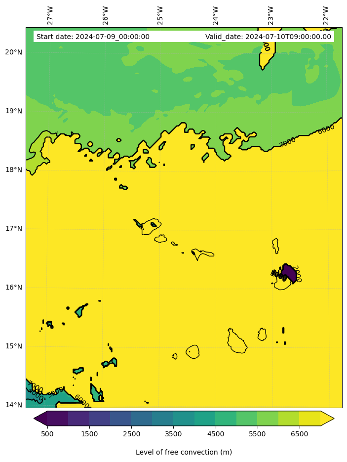 - Level of free convection (m)