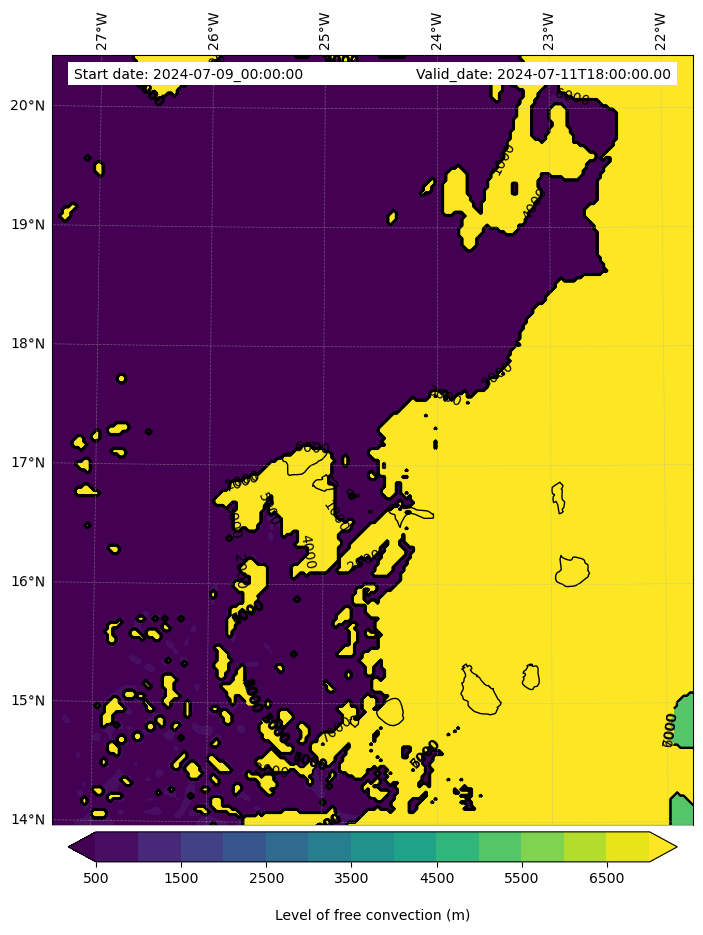 • Level of free convection (m)