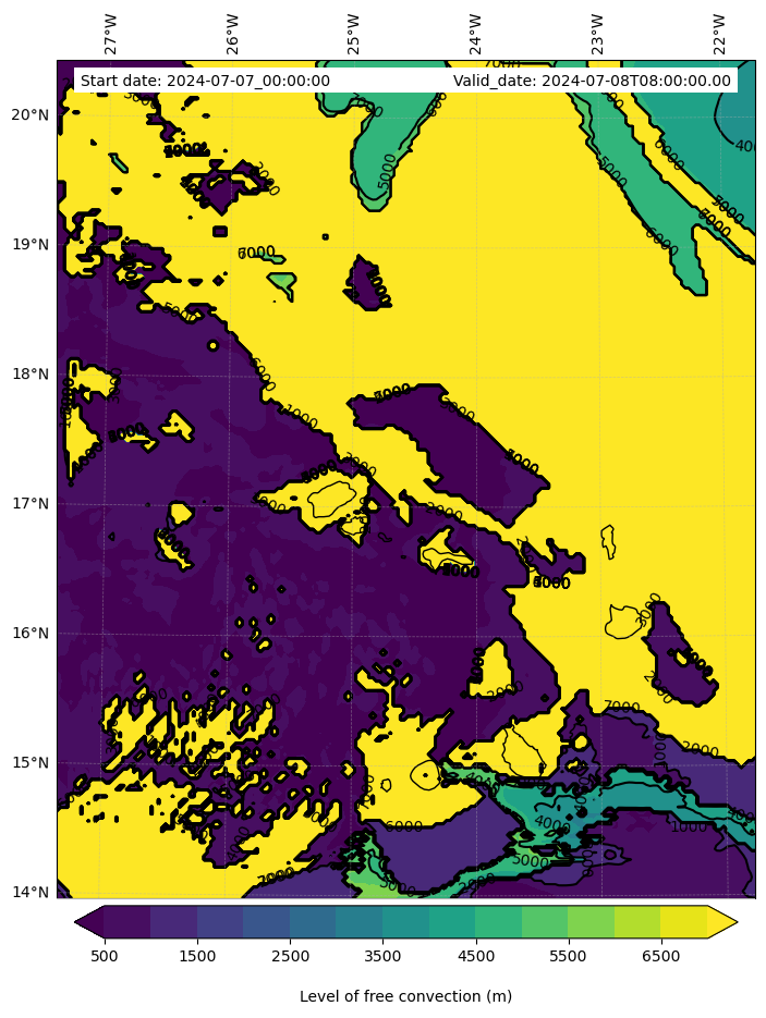 • Level of free convection (m)