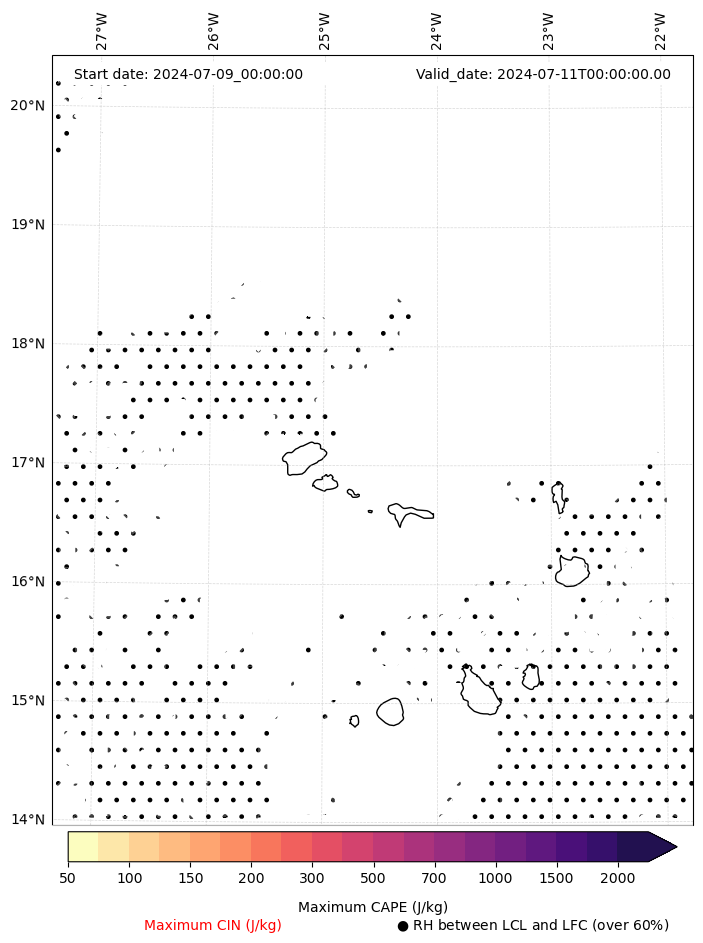 • Maximum CAPE (J/Kg)