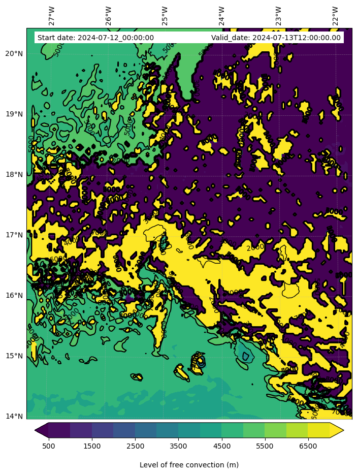 - Level of free convection (m)