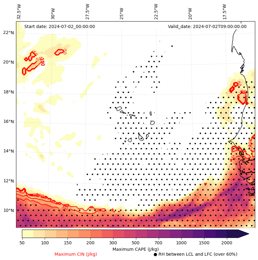 • Maximum CAPE (J/Kg)