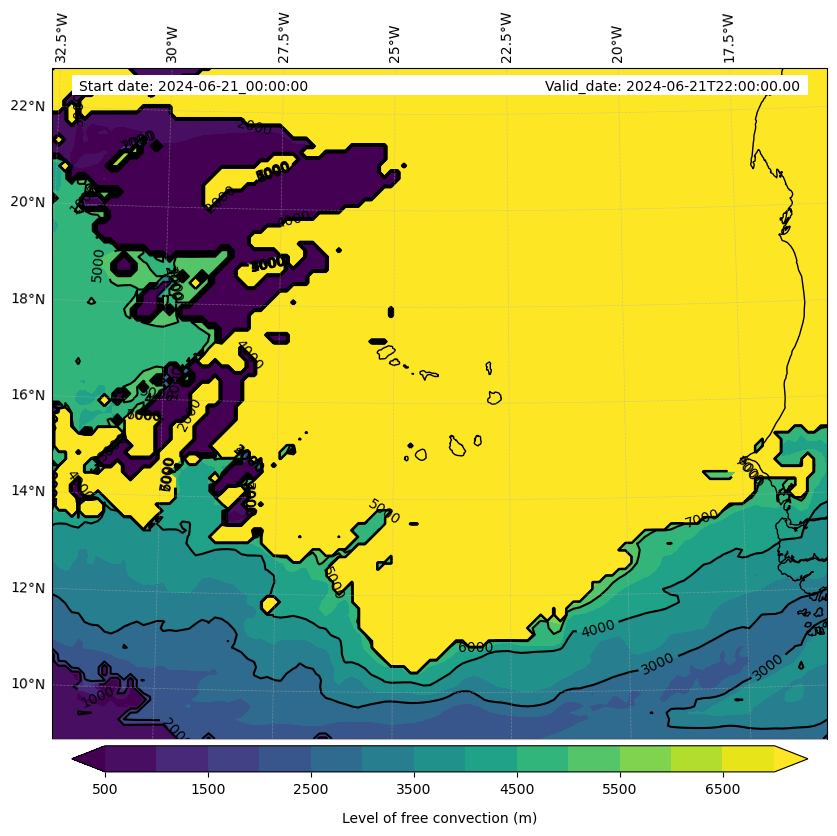 - Level of free convection (m)