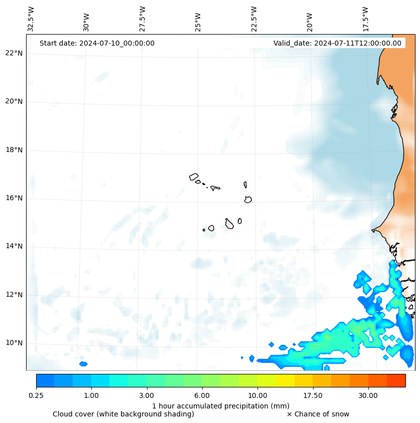 - Snow mixing ratio (g kg¯¹)