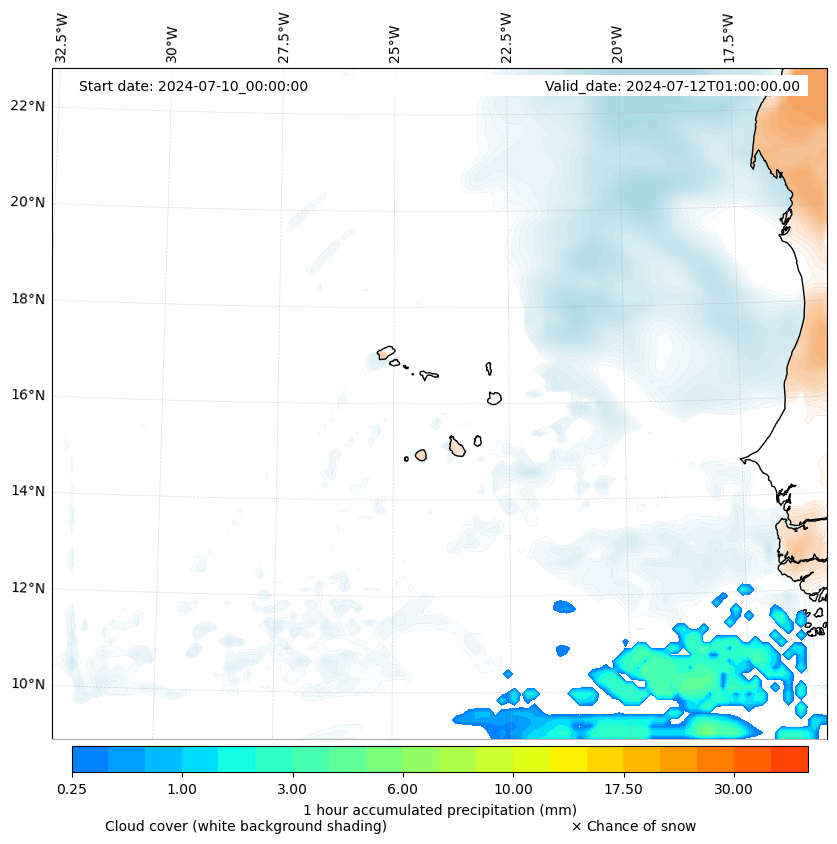 - Snow mixing ratio (g kg¯¹)