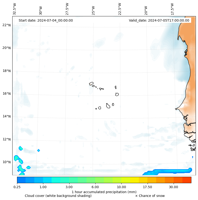 - Snow mixing ratio (g kg¯¹)