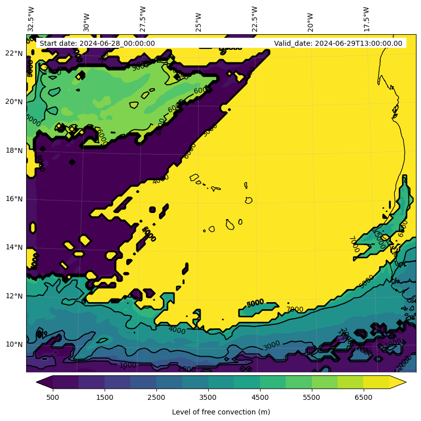 - Level of free convection (m)