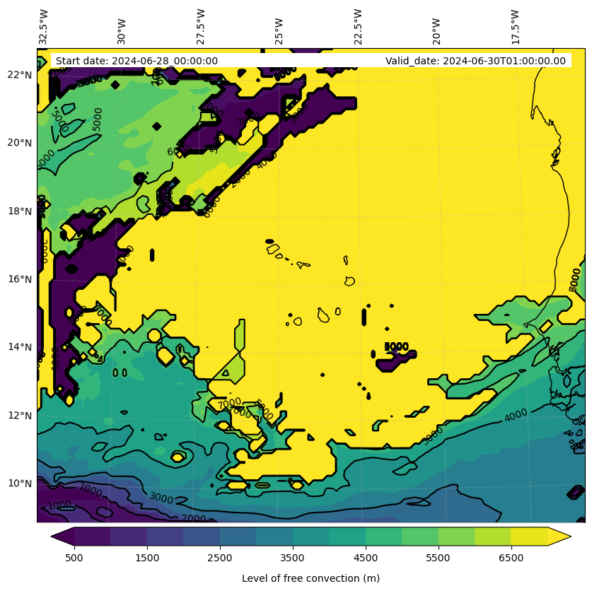 - Level of free convection (m)