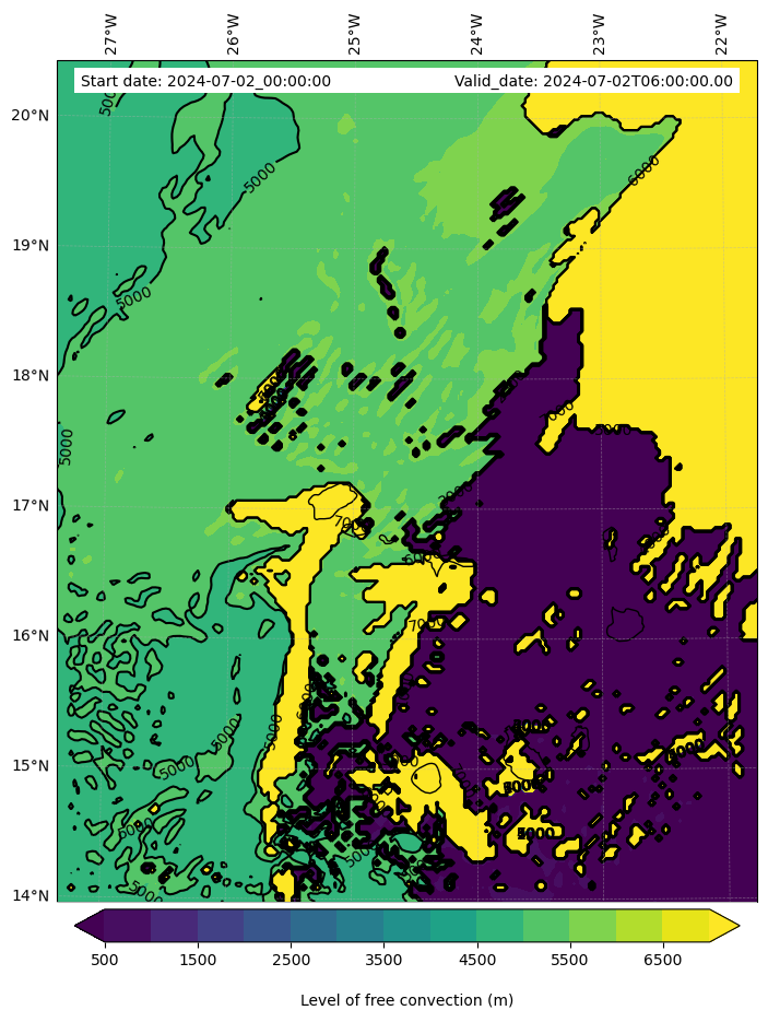 - Level of free convection (m)