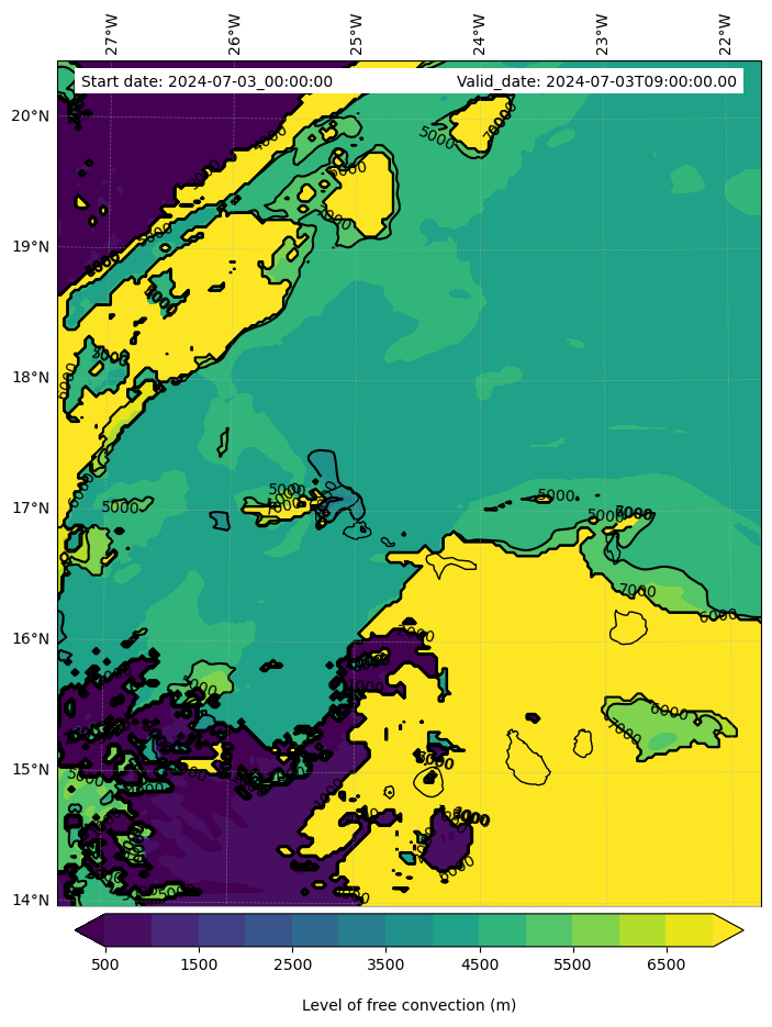 • Level of free convection (m)