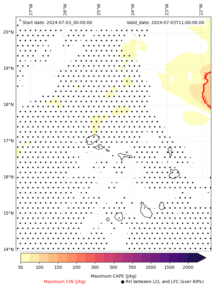 • Maximum CAPE (J/Kg)