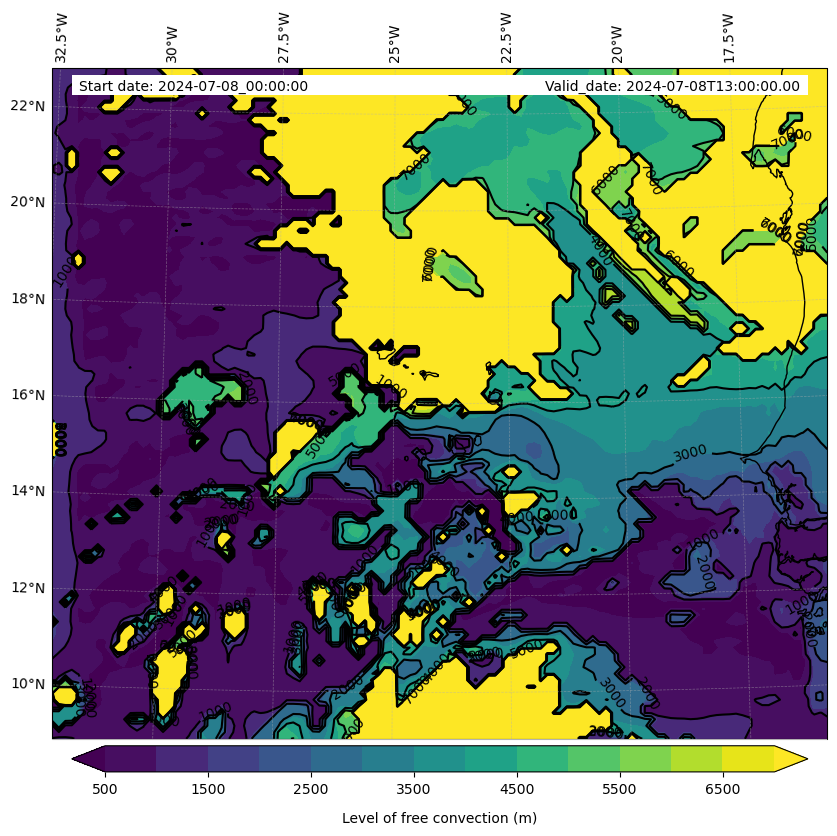 - Level of free convection (m)